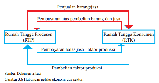 RTP memakai faktor produksi dari RTK untuk menghasilkan barang/jasa, lalu barang/jasa itu dijual kembali kepada RTK.